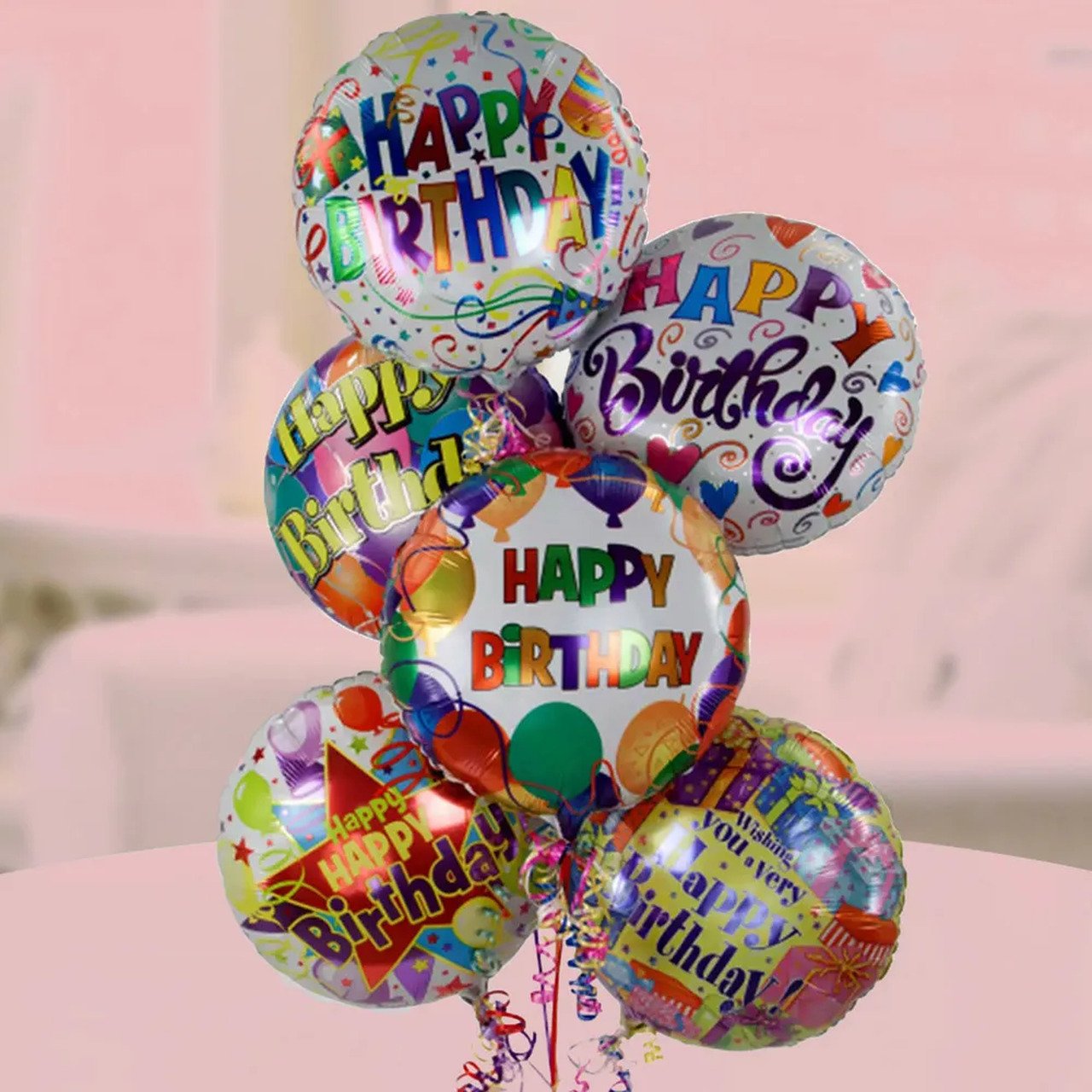 BIRTHDAY BALLOONSYour high flying helium filled 6 maylor balloons can express a variety of occasions. Why not let the balloons express how you feel? Your balloon bouquet is sure to get a rise out of who ever you send them to. Florist arranged and delivered to impress the birthday girl or boy. Includes: • Happy Birthday Balloons • Card Message • Florist Hand Tied |