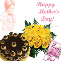 Best Wishes 424 orange or yellow roses bunches and mother's day card with chocolate cake. |