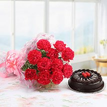 Carnation % cake20 Carnations bouquet & chocolate cake |