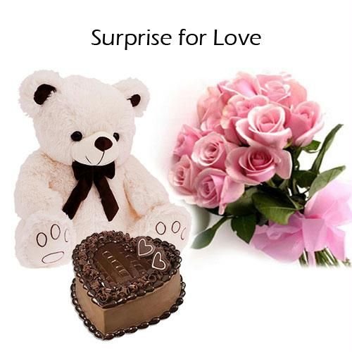 Soft Teddy N Pink Rose N Heart Shape CakeFlower Soft Teddy N Pink Rose N Heart Shape Cake. 24 inches teddy . 12 pink roses. teddy design may vary |