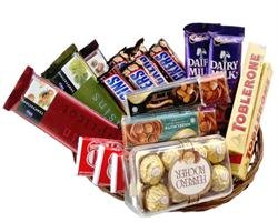 Chocolate Hamper - 19Ferrero Rocher - 16 pcs ToblerOne Chocolate - 100 gms Snickers Chocolate - 6 Nos Cadbury DairyMilk SILK Choco Bars - 5 Nos,65 gm eaach KitKat Chocolates - 3 Nos Vochelle Chocolate Bars - 3 Nos |