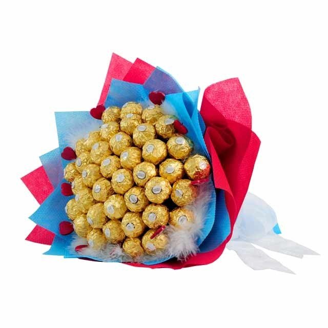 SWEET TIME40 stem of ferrero rocher in hand bouquet |