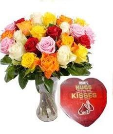 12 multicolored roses w/hershey's heart
