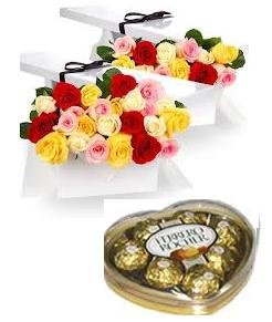 18 Multicolored Roses w/ferrero