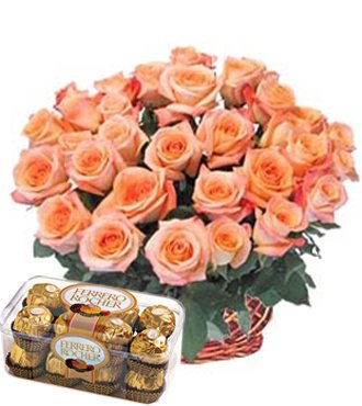 Basket with Roses & Ferrero36 orange roses Basket with & Ferrero 200g |