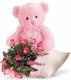 �-Being With You-�Make your beloved feel special with this romantic 12 Red Rose Bouquet with 24 inches pink teddy bear |