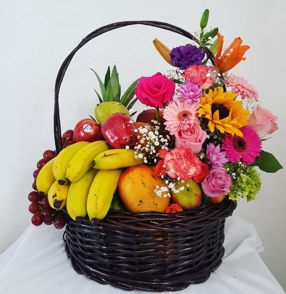 Gentle SweetnessDescription This mixed fruit basket is graced by an arrangement of pink lilies, gerbera and roses standing elegantly by. Pink Lily, Gerbera, Roses & Fruits Basket Arrangement |