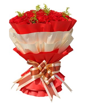 Attachment of InfantAttachment of Infant contains 33 red carnations with solidago. Red, white paper wrapped and finished with bowknot. |