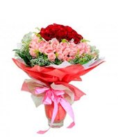 Only Love12 red roses, 33 pink roses, with baby's breath and green stuff, packaging, a beautiful vase. |