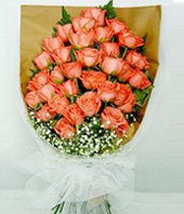 Pink Memories33 pink rose single bouquet of flowers, mango leaves, baby's breath bottom appropriate embellishment. Sweet, pretty, endearing just like your sweetheart. Gift this charming creation of blushing pink roses and baby's breath and make her feel like the princess she is. |