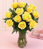 Reach out to your buddies/ pals with these lovely 12 yellow roses in a vase and make them feel special.