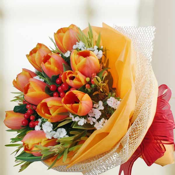 10 Tulips Hand Bouquet10 Orange Tulips Hand Bouquet |